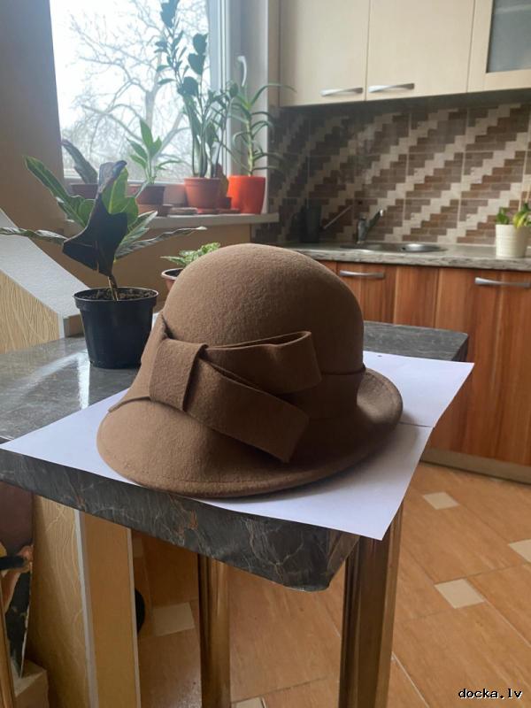 Продаю новую женскую шляпу классического, очень элегантного фасона. Шляпа с аккуратными полями, которые сзади игриво загибаются, украшена бантом из того же материала.